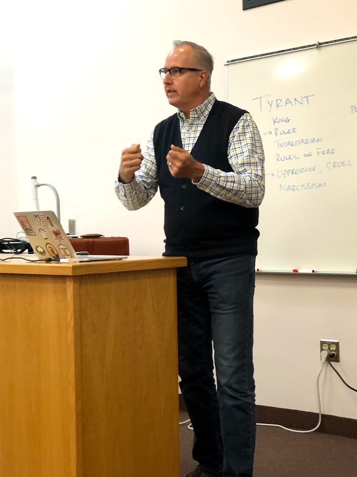 According to Nate, he often pumps rock ballads through a set of overhead speakers—a prelude to the university courses he teaches at Brigham Young University-Idaho and a way to set the tenor and mood for detailed discussions of free markets, constitutional government and Keynesian economics.