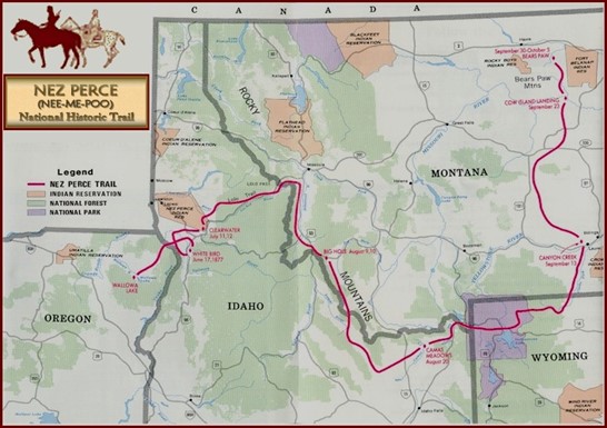 Along the way, the Nez Perce fought U.S. commanders Oliver Otis Howard, John Gibbon, Nelson A. Miles, and Samuel D. Sturgis, who commanded approximately 1,500 soldiers at different battles and skirmishes, including White Bird Canyon, Big Hole, the Clearwater, and Camas Meadows (less than 50 miles North of Rexburg). The current Nez Perce National Historic Trail that follows their movements totals 1,170 miles.